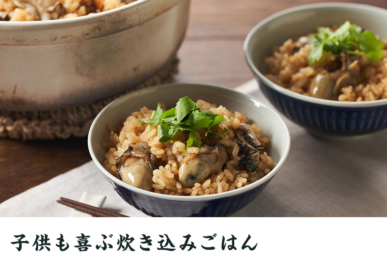 牡蠣の旨味でごはんもおいしく。これだけで食卓の主役になってしまうような、贅沢炊き込みご飯です。